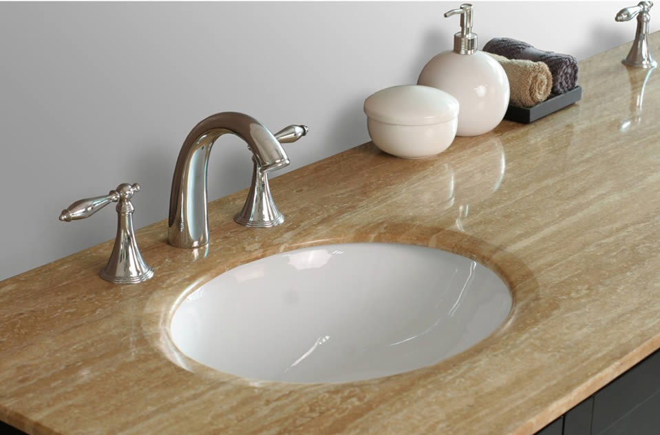 Lavatório com Cuba de Embutir de Mármore Travertino Polido